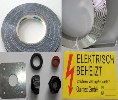 Adhesive tapes are used for fixing the heating tapes. Aluminum tapes are glued longitudinally over the heating tape to prevent insulation material caught between heating tape and the heated object. At the same time they increase the heat transfer.Glass fibre tapes are wrapped around the pipe to fix the heating tape . This shall be done at a distance of about 20cm-30cm. Additionally the aluminium tape can be used as decribed above. The type of adhesive tape depends on the operating temperature.All tapes shall be free of plasticizers. Plasticizer (usually available in 'cheap or installation-' tapes) destroy the functionality of the heating tapes.