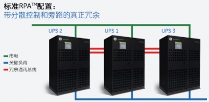该系统中的一个UPS模块智能地承担领导角色, 而另一个UPS模块可访问所有控制参数。如果一个UPS无法运行,则会在其他UPS之间自动重新分配负载。如果主UPS无法运行,则另一个UPS会自动之 间自动承担领导角色。GE的RPA技术是通过将控制电子器件分布在该系统的每个UPS模块中加以实施的。