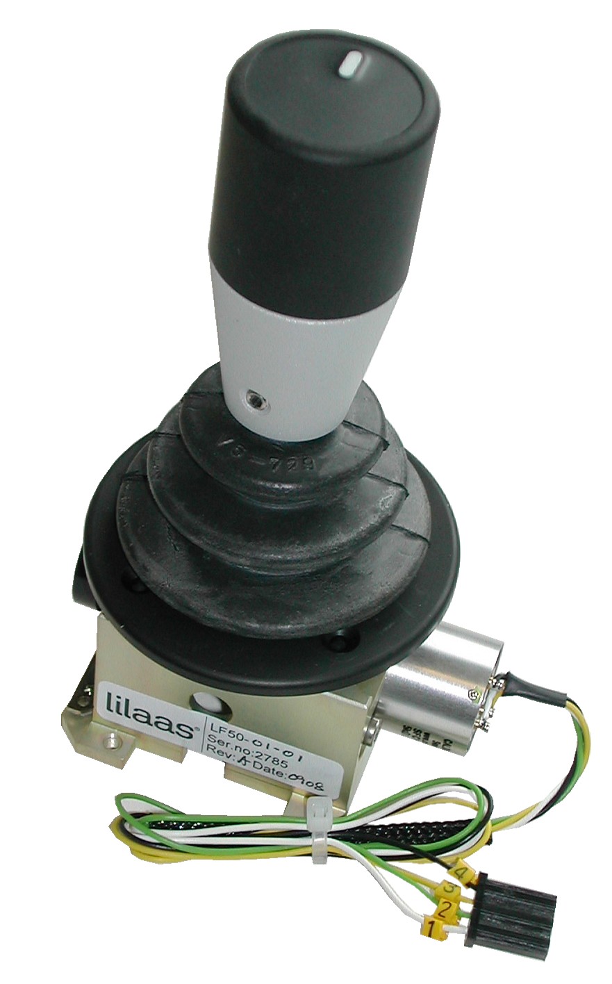 LF50 是一个多功能型操纵杆可以有 1,2 或 3 个轴信号输出。在 x 和 y 轴上手柄可以运动的角度为 52º,在 z 轴上