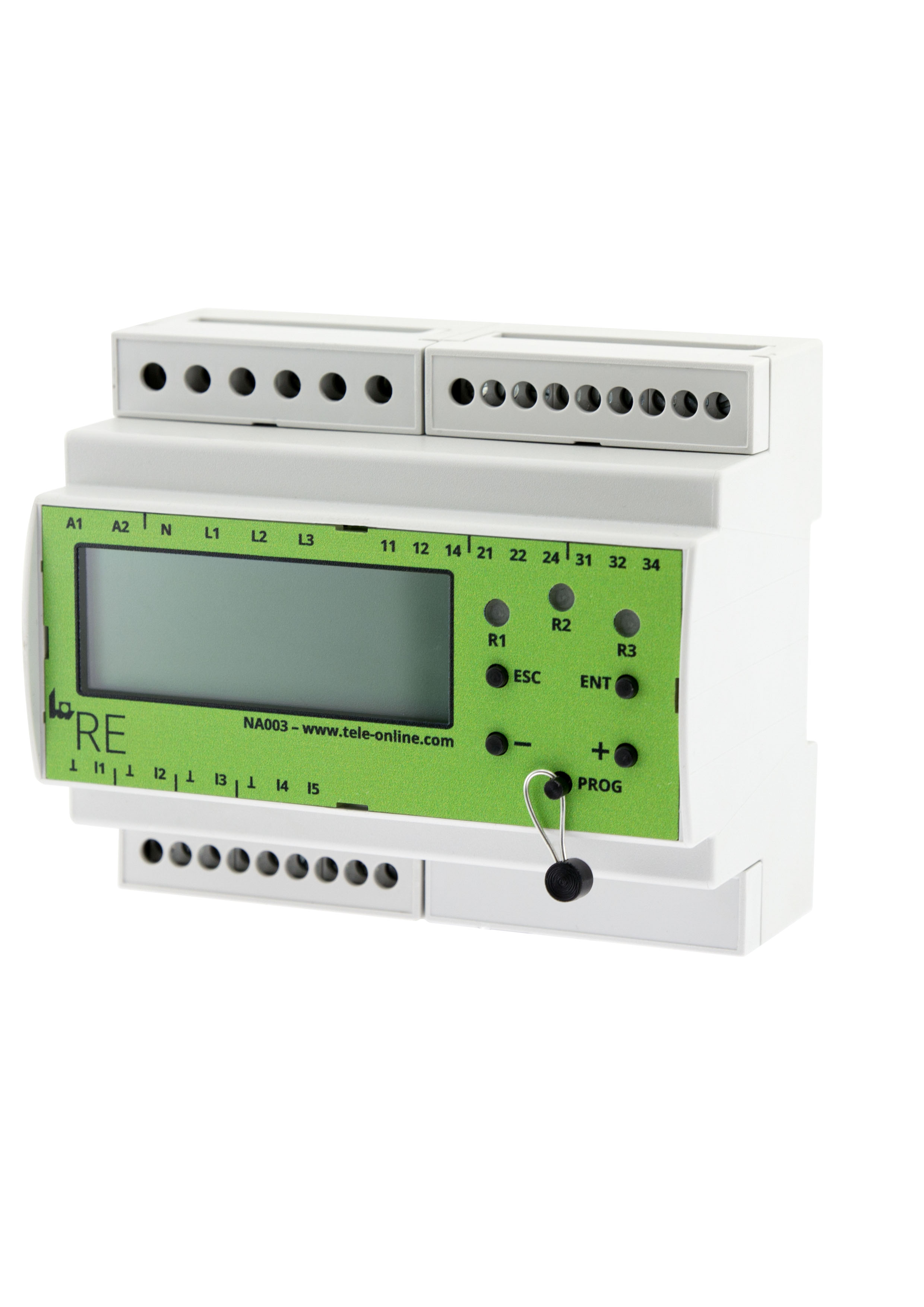 Monitoring relay RE series; Frequency and voltage monitoring; Grid and system protection; Functional safety; Measuring voltage 3 x 400/230V AC; Supply voltage 24V DC, 110-240V AC; 3 CO contacts; Width 107 mm; Installation design |